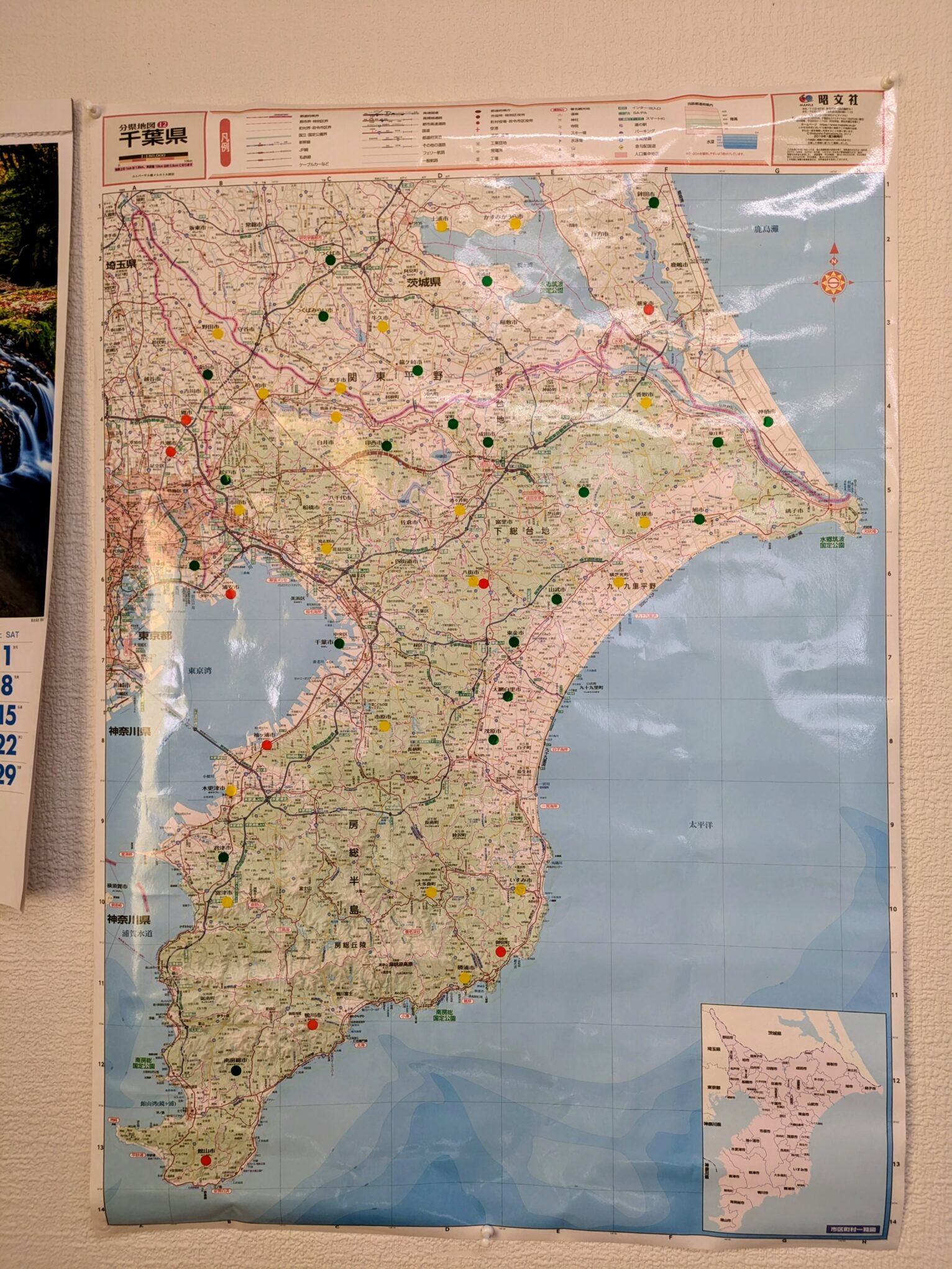 そこで先日、創業以来ずっと壁に貼っていた「千葉県の地図」を外し、気持ちを新たに「日本地図」へと張り替えました。 日本全国のお客様のお役に立てるよう、まずは現在いただいている一つひとつの現場を安全第一で完成させ、胸を張って15周年を迎えたいと思います。