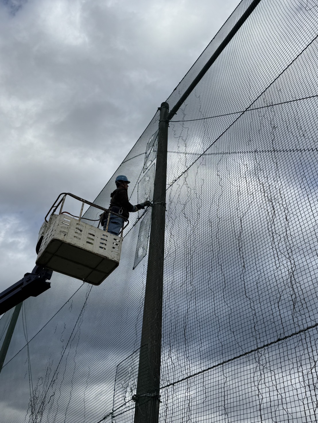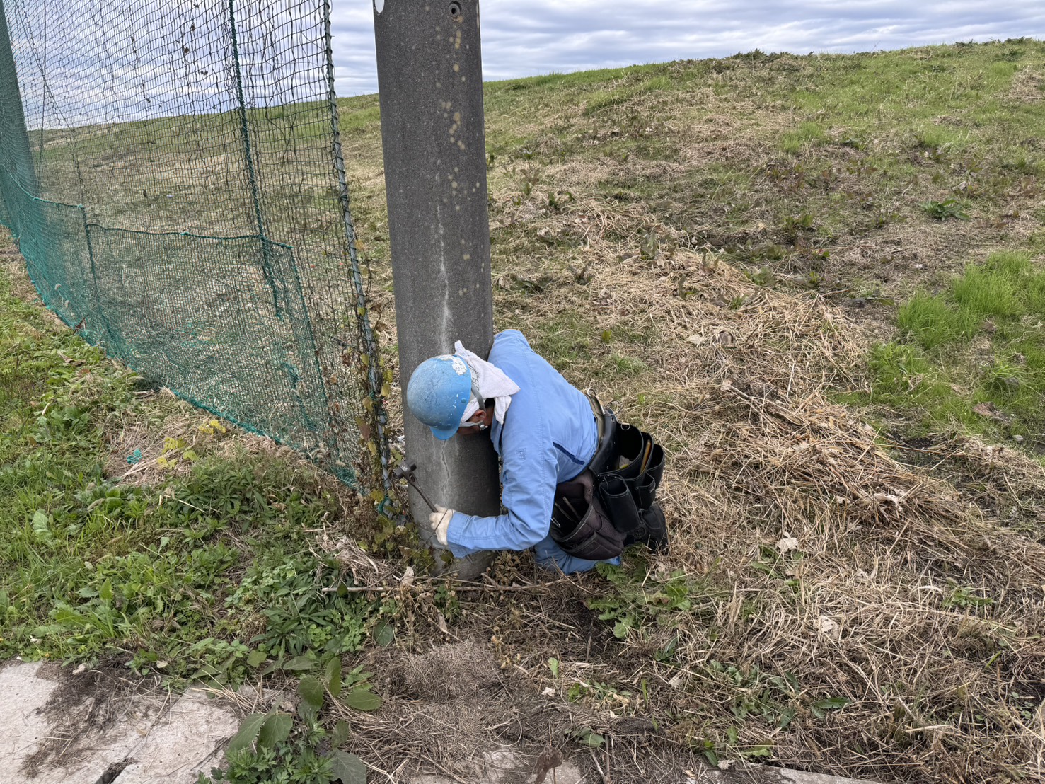 本日は、千葉県内の学校様よりご依頼いただいた「野球場防球ネット補修工事」の現場からお届けします。