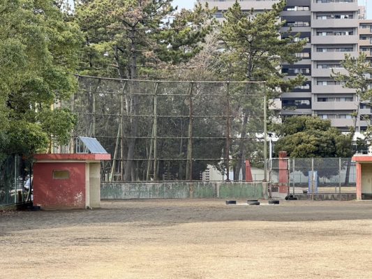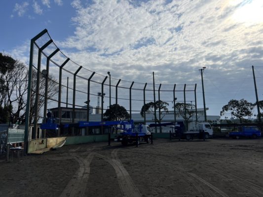 千葉県内で施工中のバックネット..