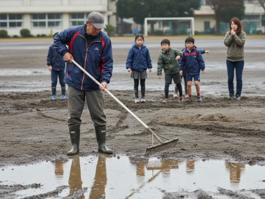 茨城県内中学校でグラウンド整備..